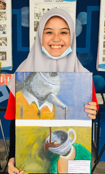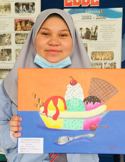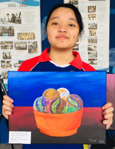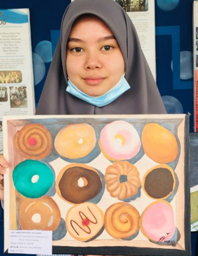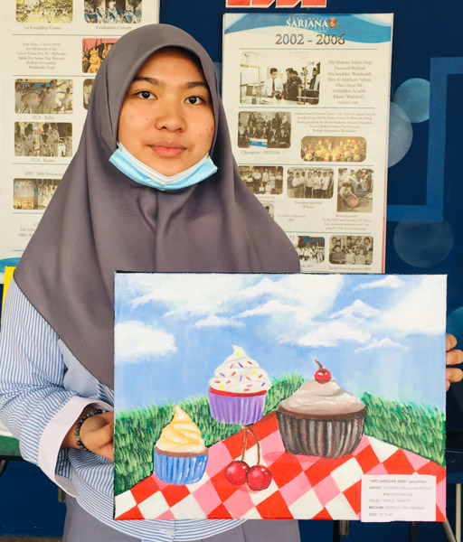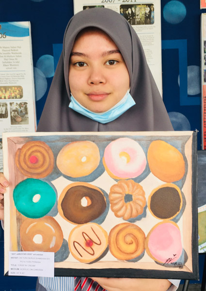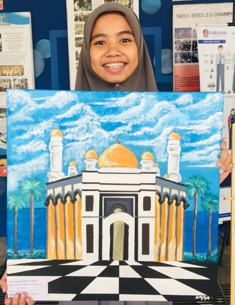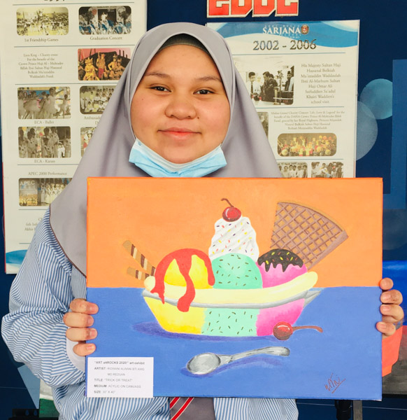 Imaginative Art students from Year 10 showcased their creativity in an art exhibit dubbed “ART attROCKS!” from 17th – 31st August 2020 at SMSS Secondary waiting area, as an initiative of the Art Department in conjunction with the 74th birthday of His Majesty Sultan Haji Hassanal Bolkiah. This activity aimed to promote art appreciation and exhibit the talents of our students by displaying their beautifully painted subjects that ranged from floral, treats, landscape and landmarks in acrylic on canvass. The selected students who participated were Ridwani Binte Awang Mohd Reduan, Sharifah Najlaa Batrisyia Binte Syed Rizuan, Jewel Cheung Kai Hui, Dayangku Nurus Shamshiah Binti Pengiran Haji Yura Perkasa from Year 10F; Nur Hidayatul Farayiyah Binti Mohd Azaleen Nizan, Emma Erdina Syukriah Binti Haji Zainidi, Vernon Hung, Siti Nur Syakirah Binti Haji Ismail, Siti Johaidatul Nazihah Binte Shah Jahan @ Nur’ain, Munira Tahasin Iqbal from Year 10B; Rina Pacuribot, Ana Mikaela Traquina and Kim Cedric Basio from Year 10C.