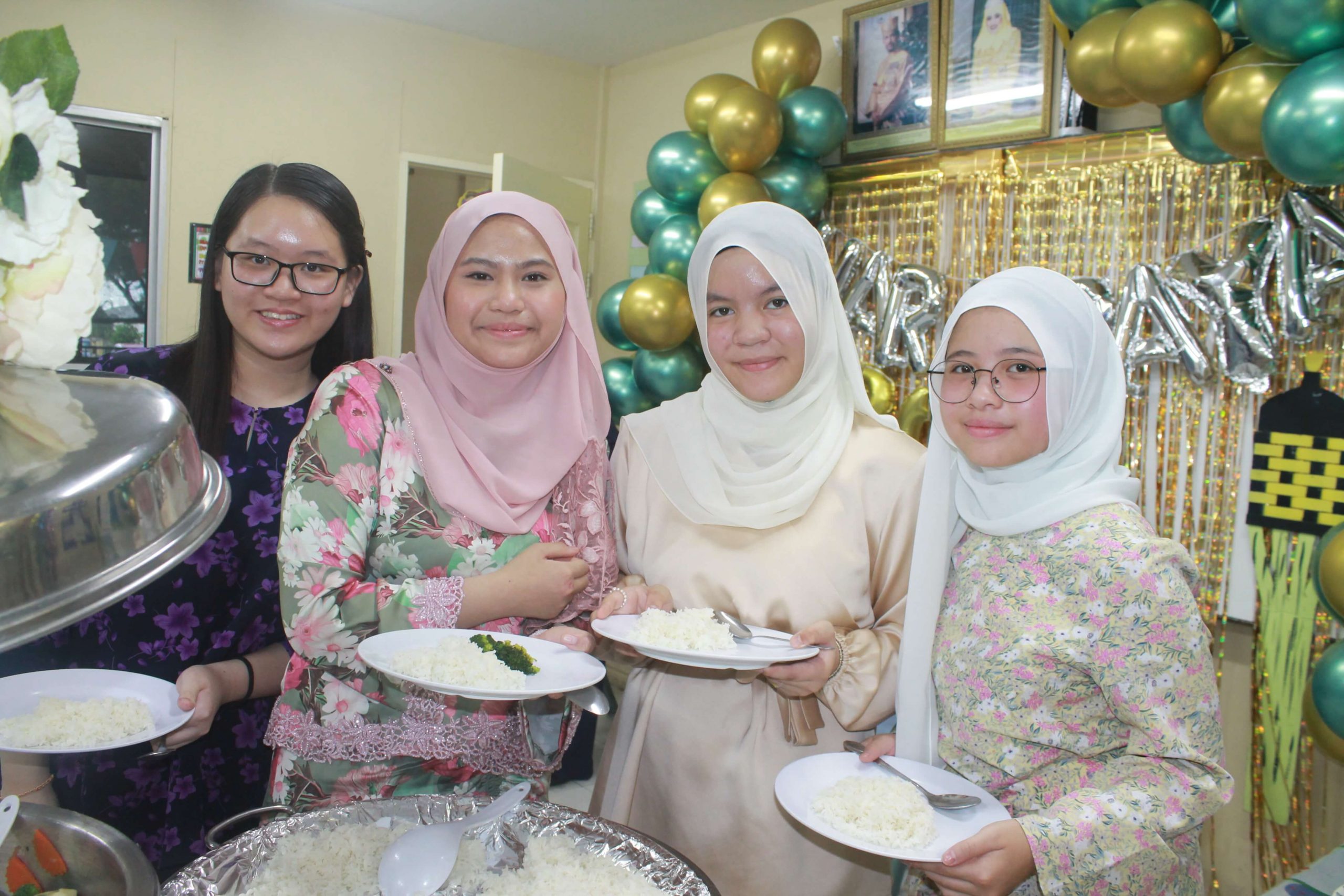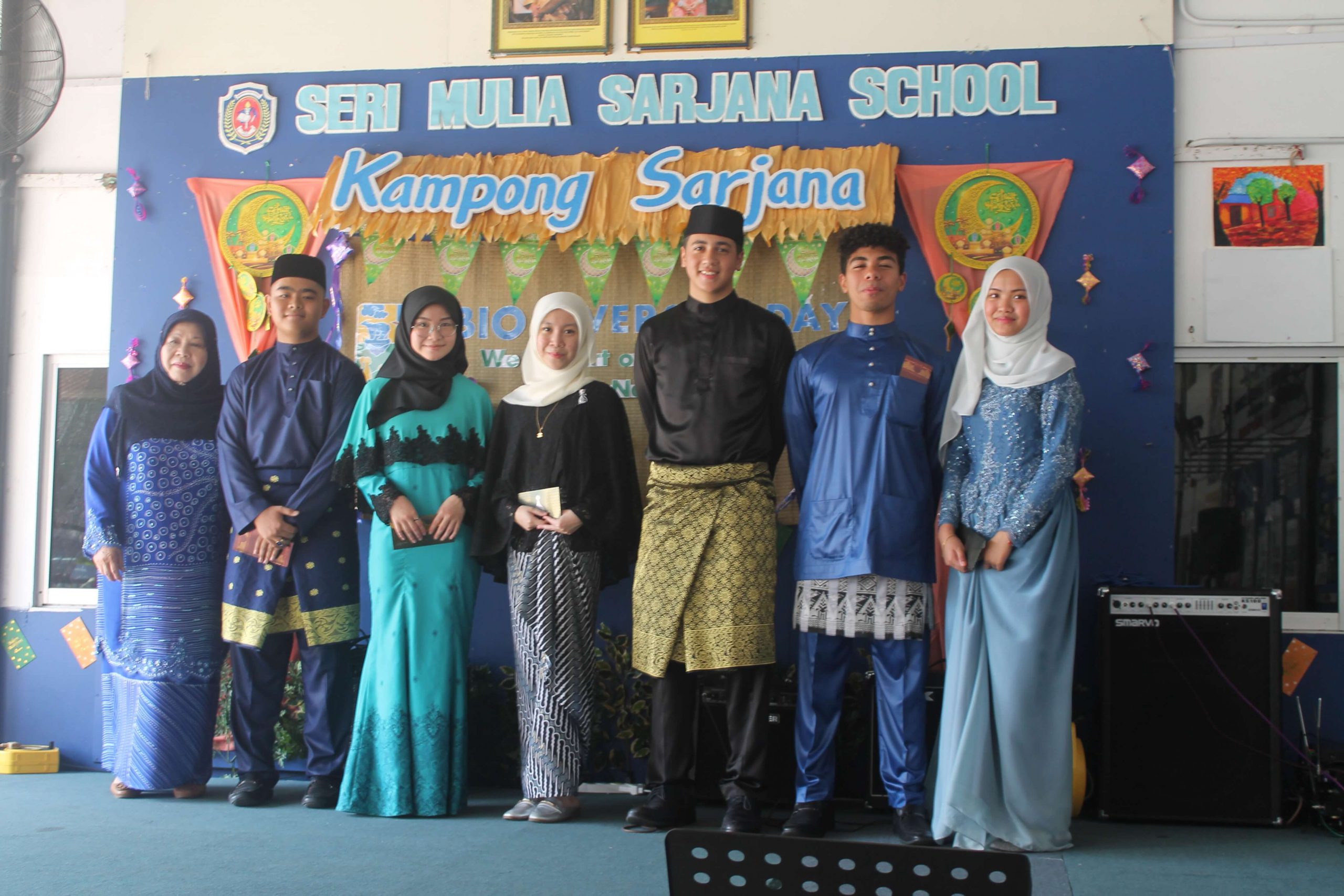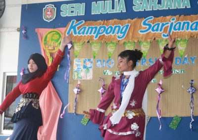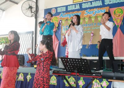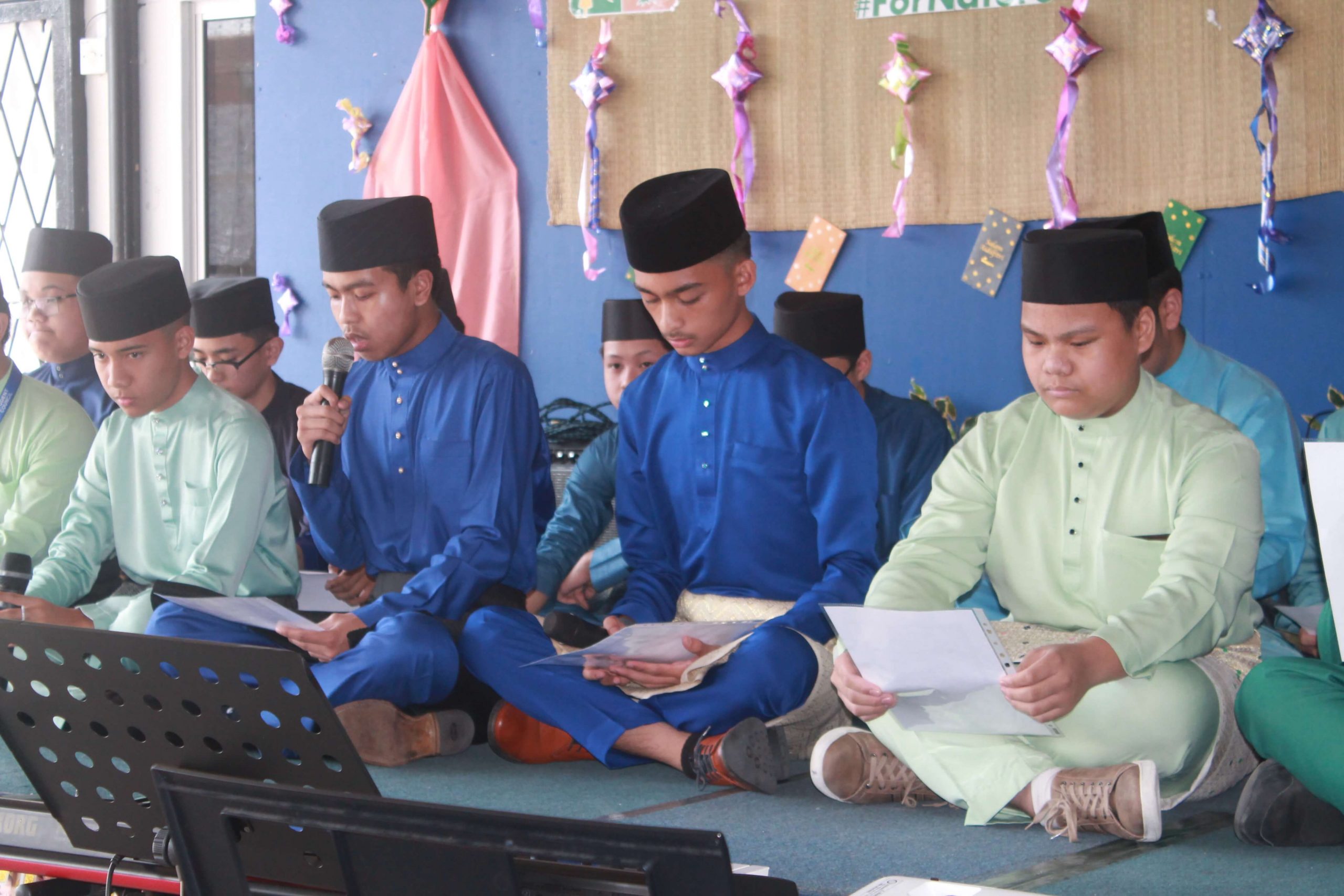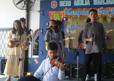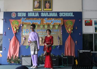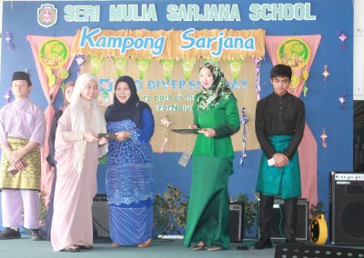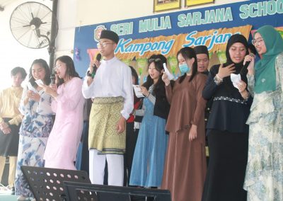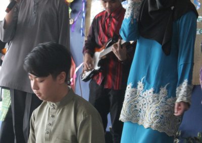 An array of cultural activities and performances were shown by the classes of Year 11, Year 10 Express (morning) and Year 8 students (afternoon) which gave the entire school cheerful and enthusiastic atmosphere. The highlight of the day was the ‘best dressed competition’ for both male and female students for lower and upper secondary sections and special awards went to best dressed teachers as well. The awards were presented by Principal Cikgu Gazala. The program ended with a captivating music and song numbers performed by the Musical Ensemble. This festive day was celebrated with open classrooms party where students and teachers brought snacks and mouth-watering delicacies to share with everyone. It was a magnificent day indeed!