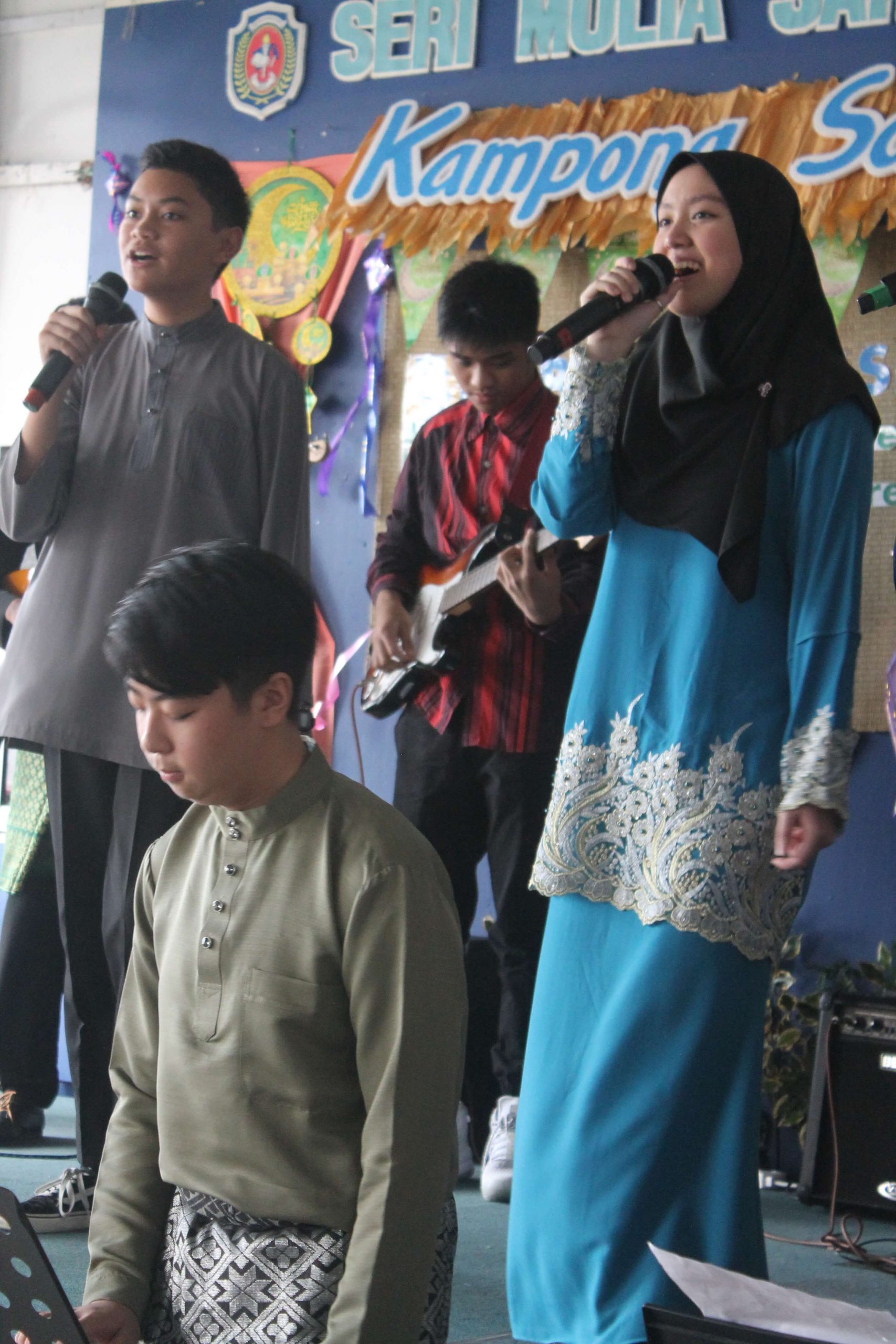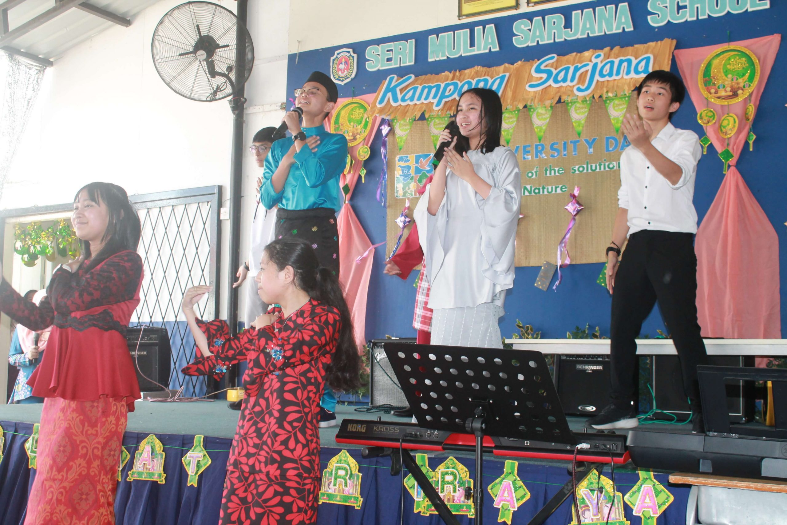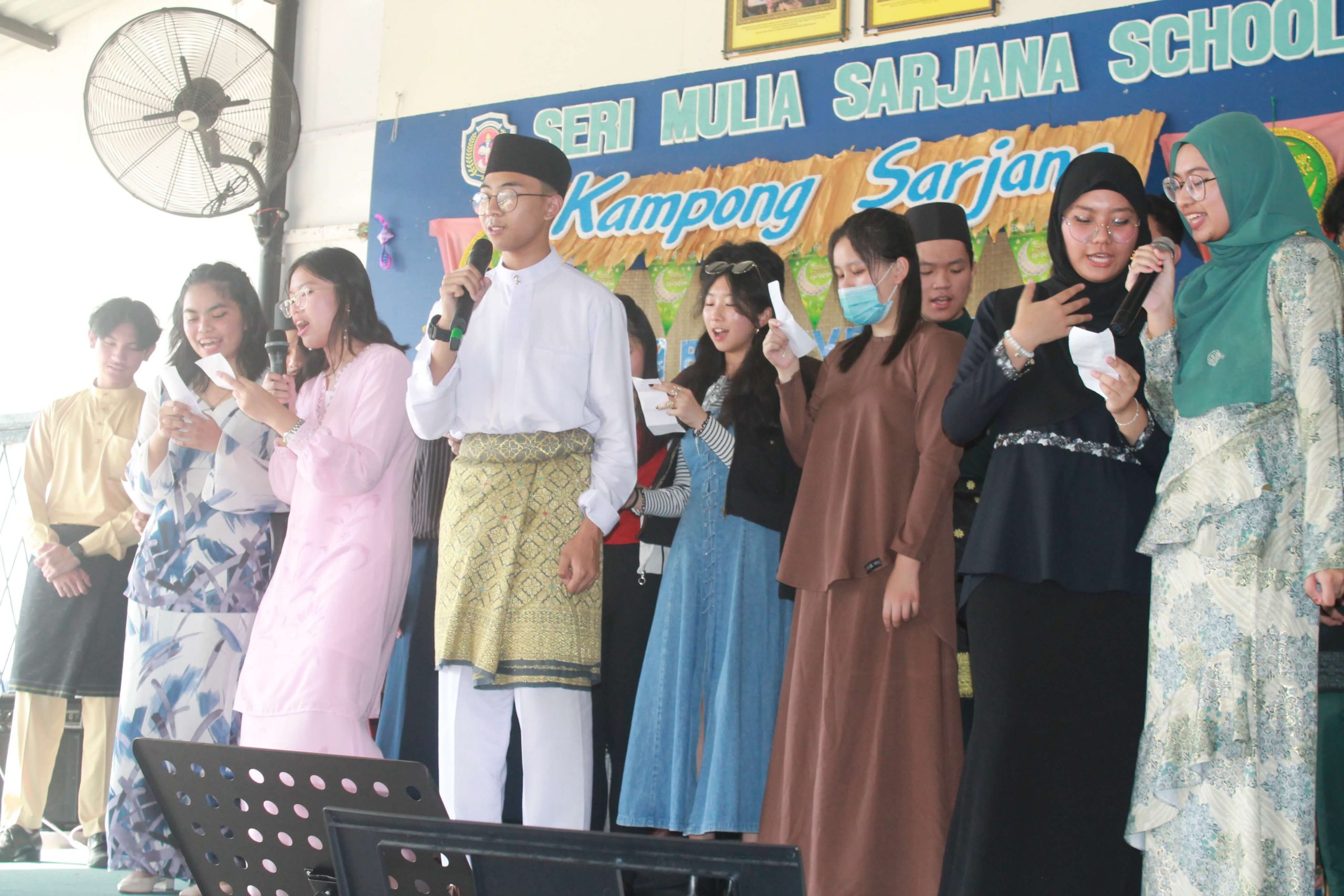 An array of cultural activities and performances were shown by the classes of Year 11, Year 10 Express (morning) and Year 8 students (afternoon) which gave the entire school cheerful and enthusiastic atmosphere. The highlight of the day was the ‘best dressed competition’ for both male and female students for lower and upper secondary sections and special awards went to best dressed teachers as well. The awards were presented by Principal Cikgu Gazala. The program ended with a captivating music and song numbers performed by the Musical Ensemble. This festive day was celebrated with open classrooms party where students and teachers brought snacks and mouth-watering delicacies to share with everyone. It was a magnificent day indeed!